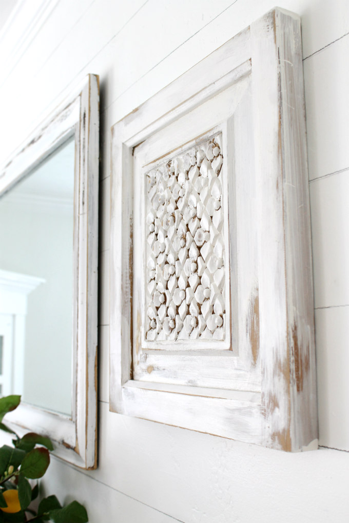 As soon as I saw these, I knew exactly what I was going to do with them; paint them white, distress them and hang them in my dining room.
