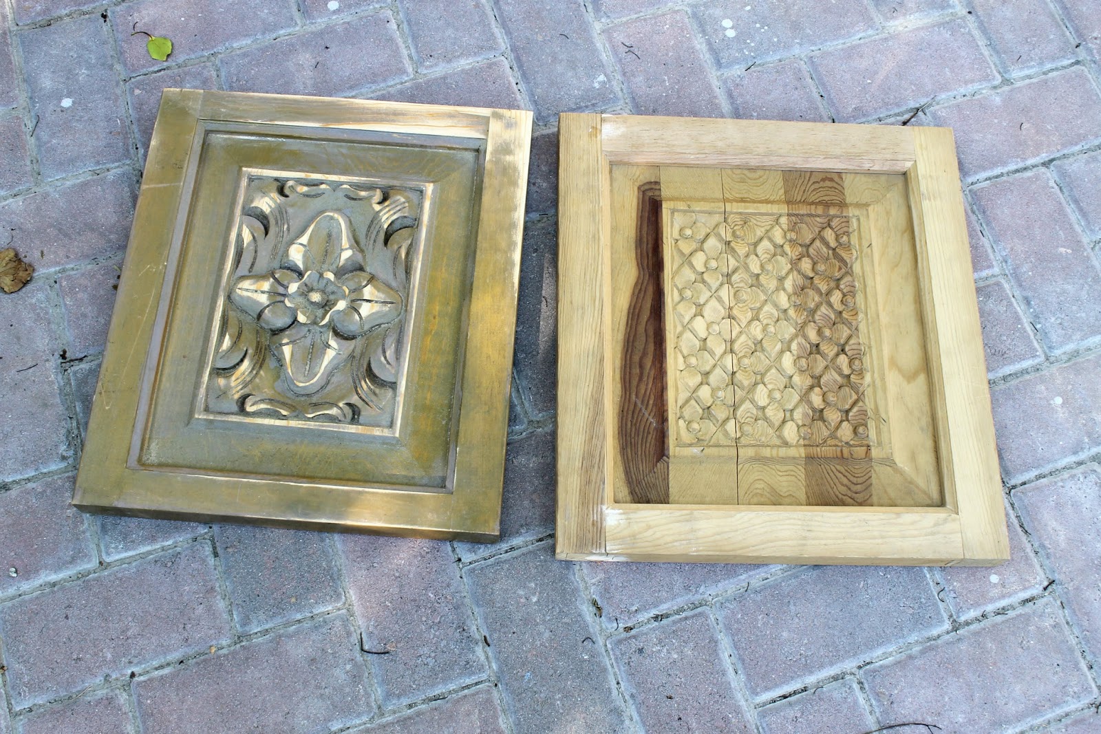 Okay and one last yard sale find were these two wood carved plaques that I got at a neighbors yard sale for just $1.