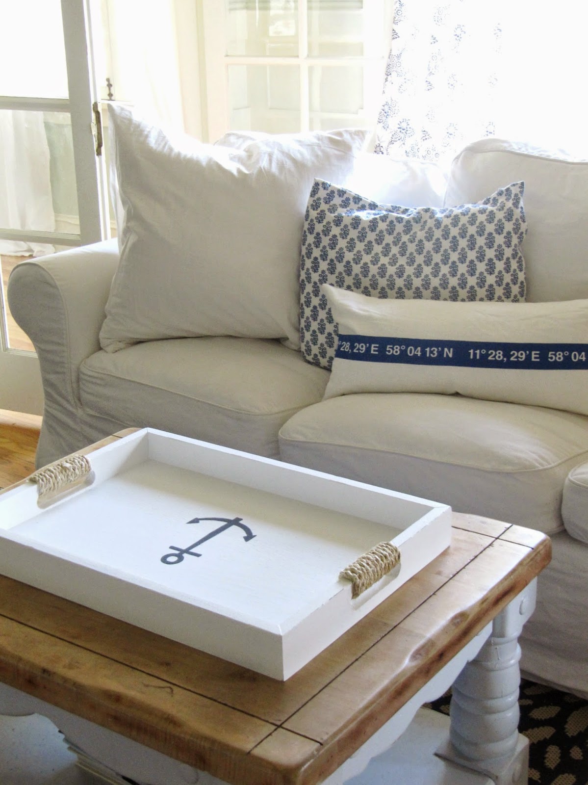 I then decided a simple anchor stenciled in the center would look great on the tray.