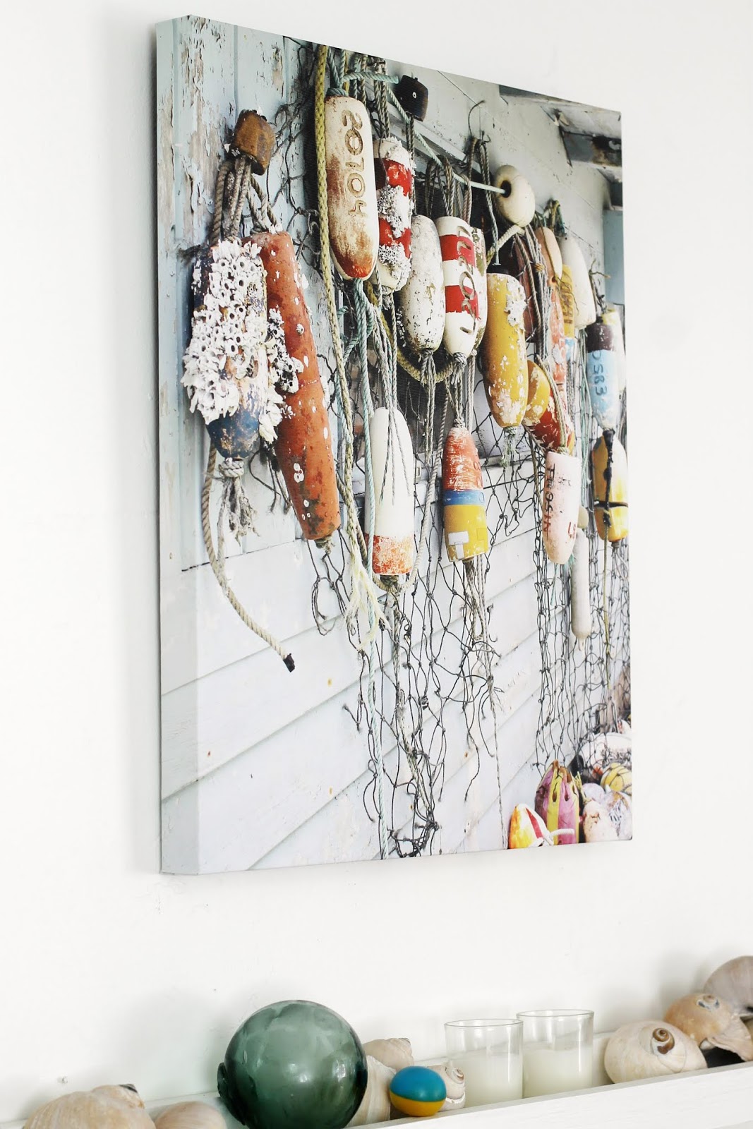 I love the casual vibe of canvas prints – lightweight, no frame, no reflective glass. The hardest part is picking the right photo. I love your wall of buoys – perfect match for canvas and such good memories for you.