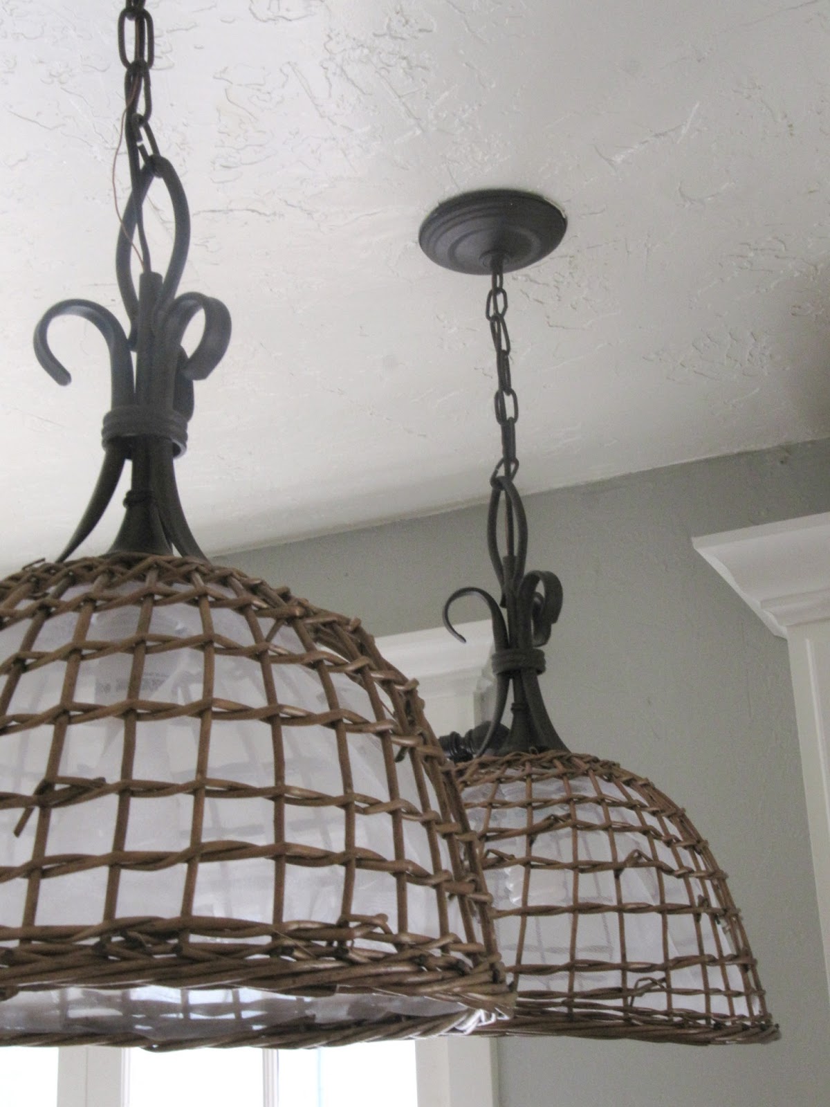 I knew all I needed to do was switch out the glass shades, since I didn’t mind the hanger part as much.