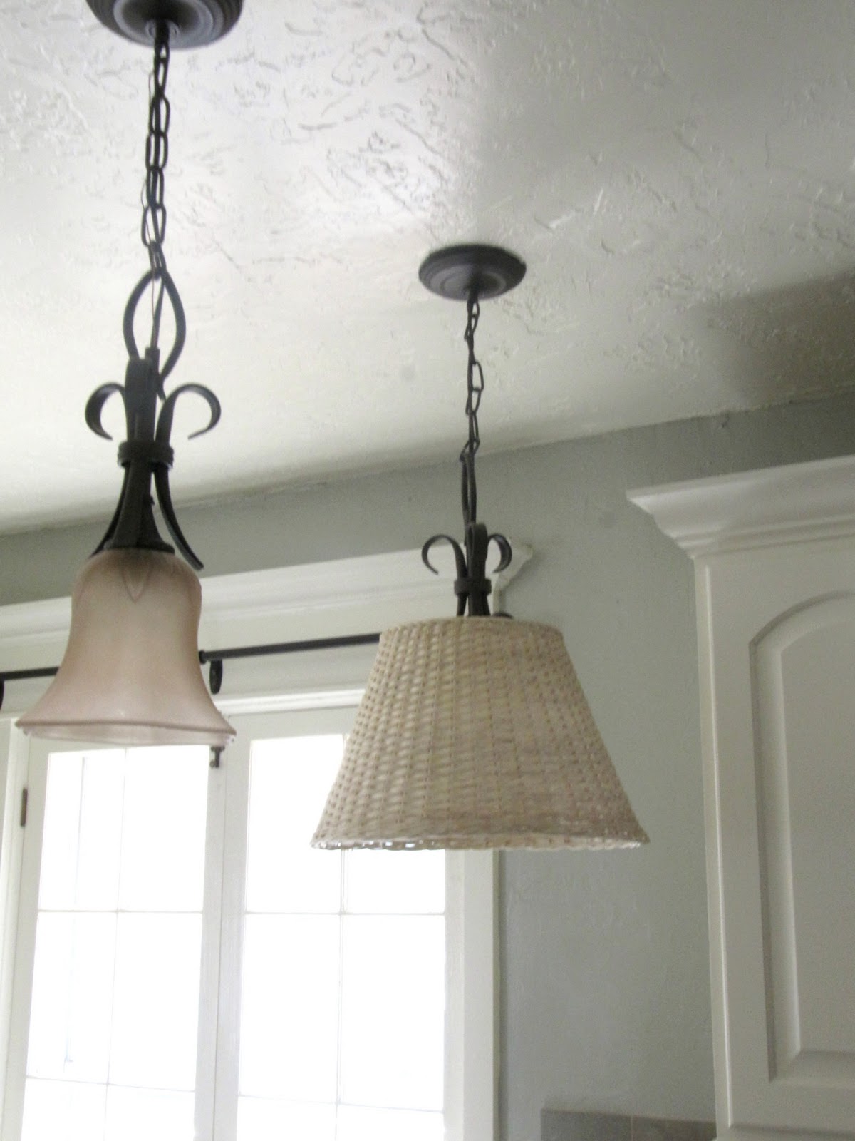 I knew all I needed to do was switch out the glass shades, since I didn’t mind the hanger part as much.