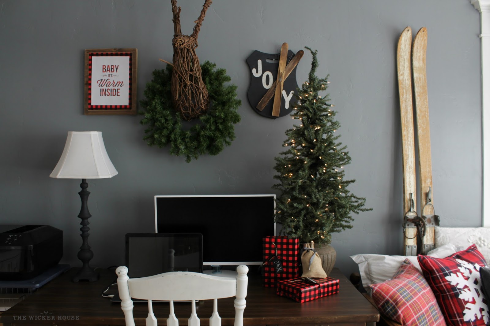 I recently painted this room a dark gray (post seen here) and honestly I did it especially for Christmas. I wanted the room to feel warm and cozy, with a rustic, lodge, man-cave look to it, which I think is great for this time of year.