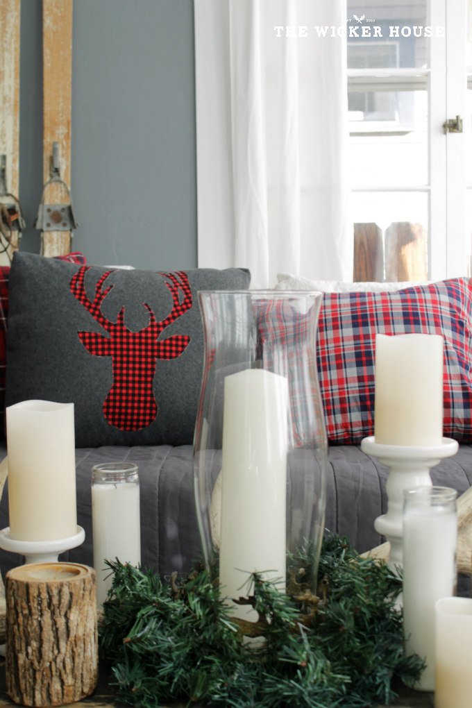 The plaid deer silhouette pillow is new this year. I made it out of a fleece dog blanket that I picked up in the dollar bins at Target. I shared a how-to HERE at City Farmhouse.