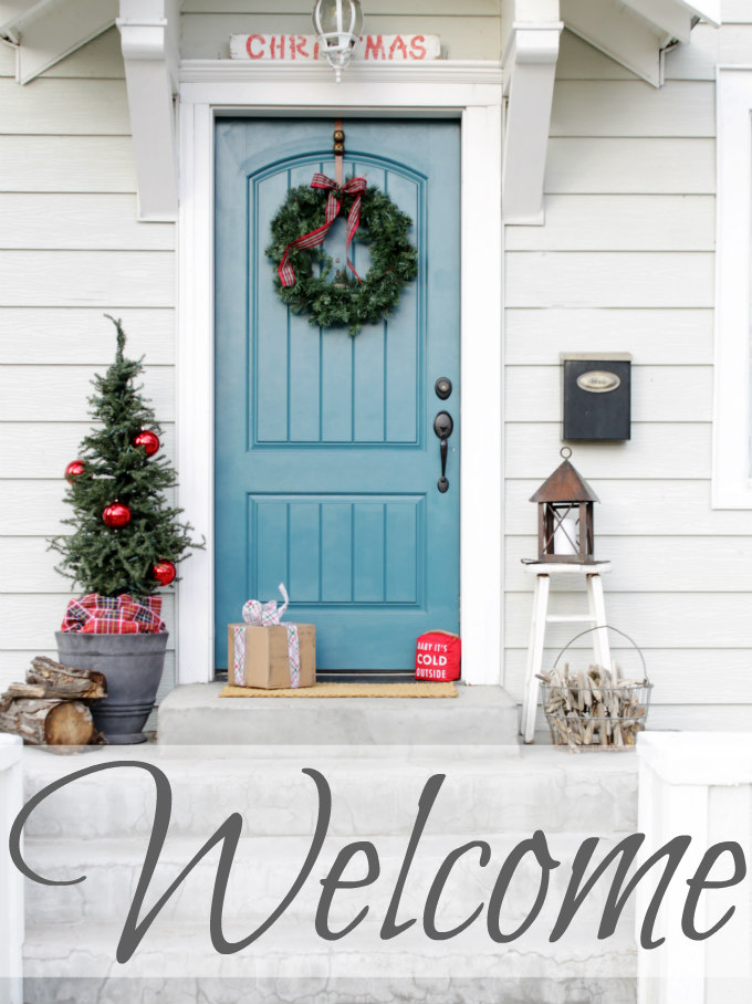 Girl, you had me swooning at your front door! Such a lovely home… loved the gray shutters, seeing your furry friend and all the red and black buffalo check. Beautiful!! Wishing you a very Merry Christmas. xo