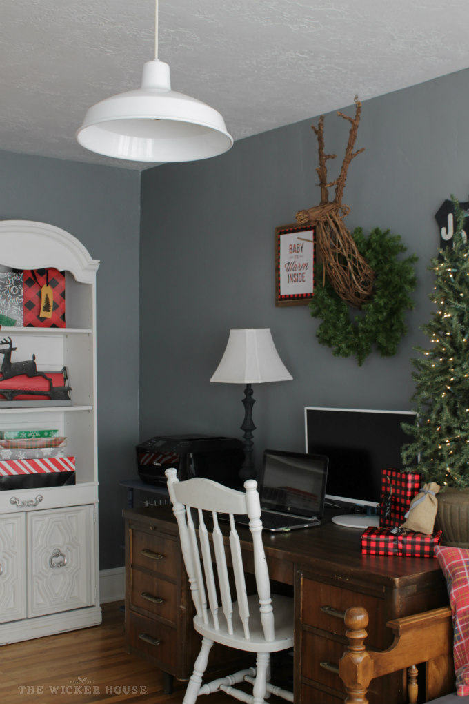 I recently painted this room a dark gray (post seen here) and honestly I did it especially for Christmas. I wanted the room to feel warm and cozy, with a rustic, lodge, man-cave look to it, which I think is great for this time of year.