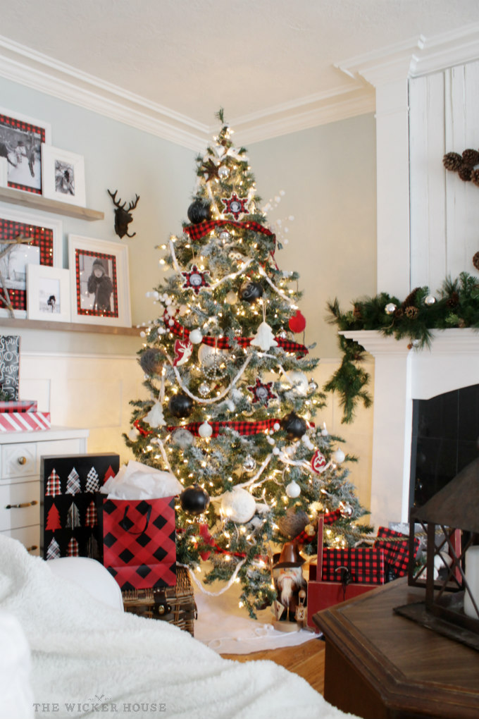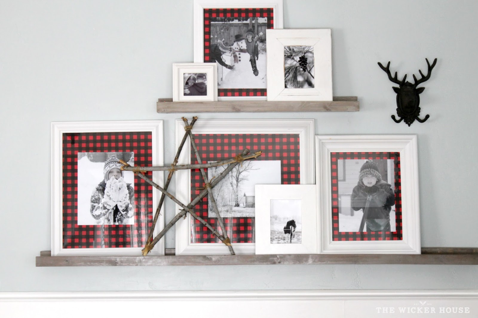 I think my favorite part of my holiday decorating is this gallery wall I have created. I used black and red plaid wrapping paper as photo mats and then I printed out some of my favorite winter pictures from last year. The pictures of my boys playing in the snow are dear to me because they remind me of our fun snow days together.