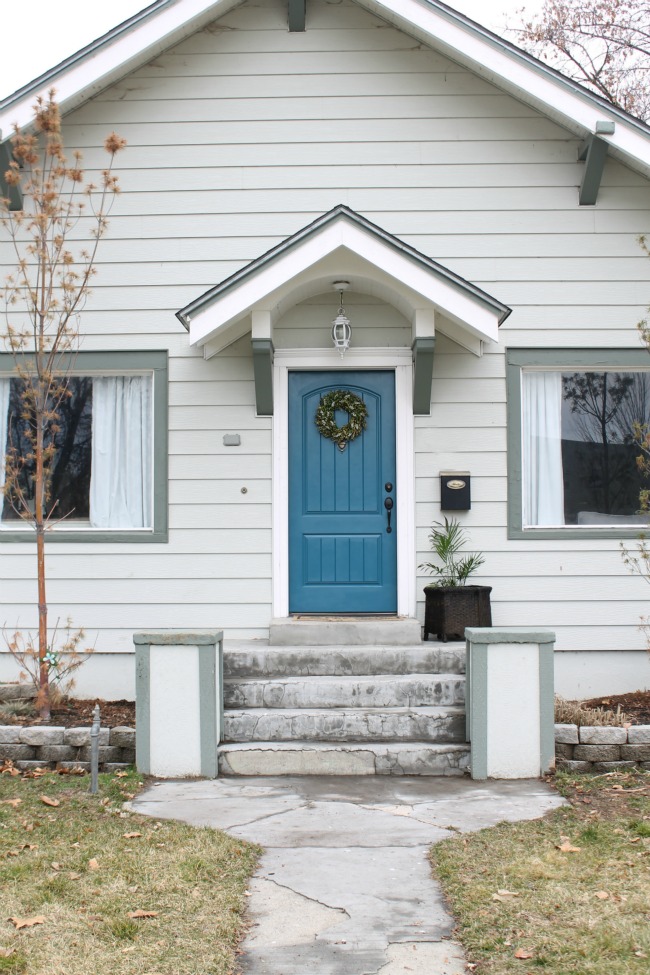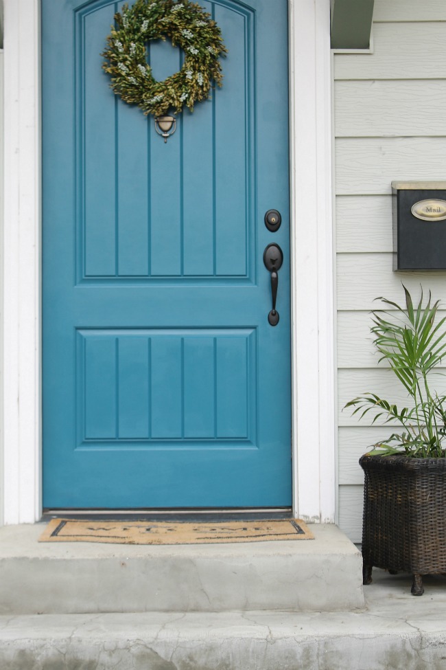 Nothing against red, but both neighbors also have red doors, so I was wanting ours to be a little different. And after painting our back door this blue,  I knew I wanted to paint the front door as well.