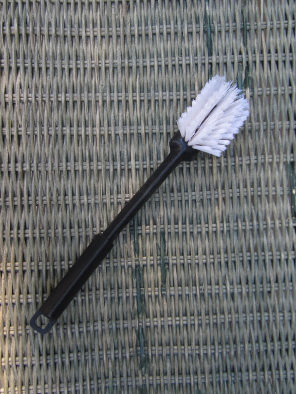 So the first thing I did was brush it down with a kitchen scrub brush. It worked well to get all of the dust and dirt out of the weaves.