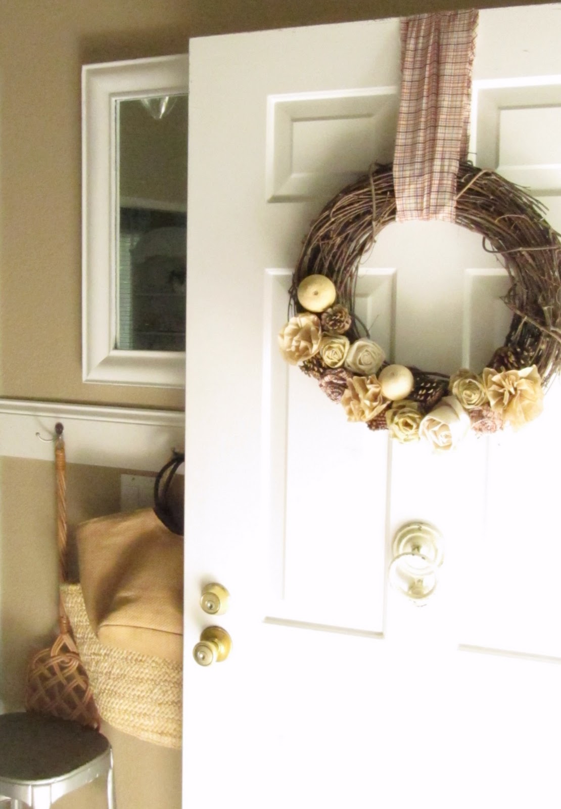 The grapevine wreath was purchased at Hobby Lobby for a few dollars.