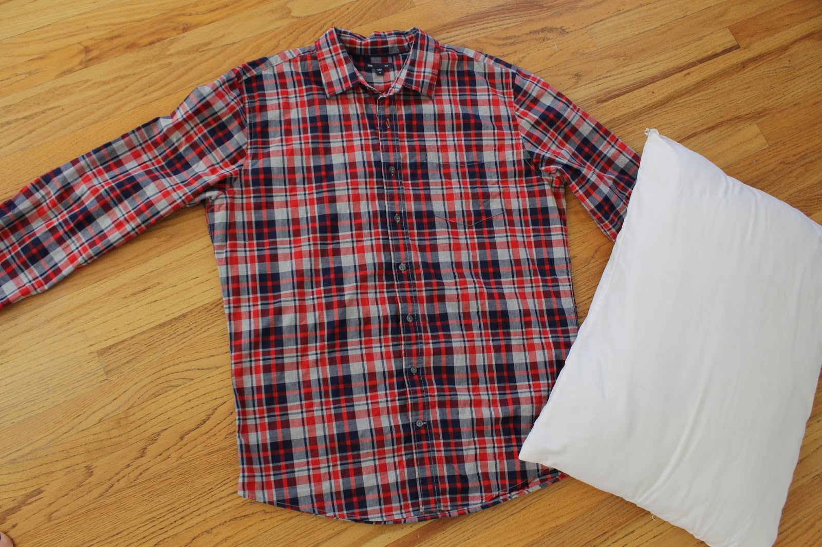 5.And lastly, I unbutton the shirt, flipped it back to the front side, and then inserted my pillow.