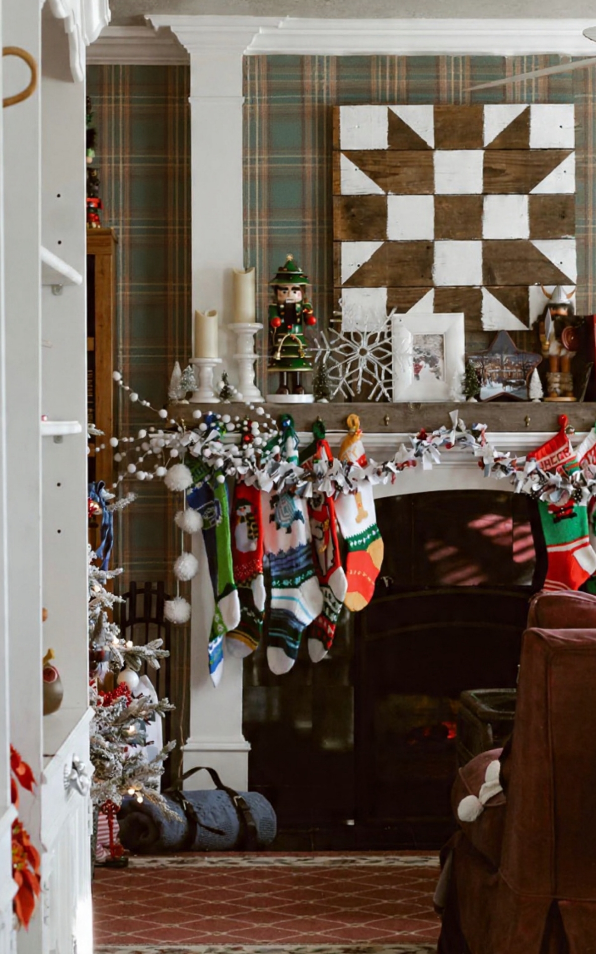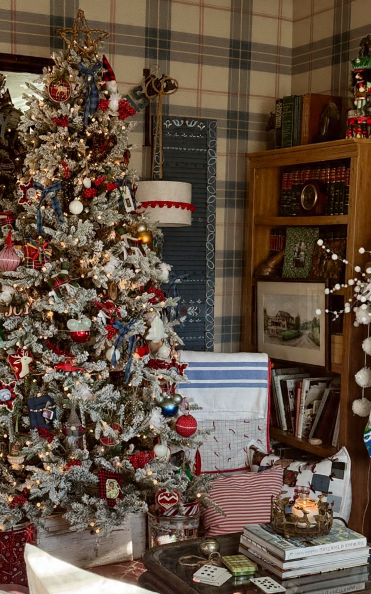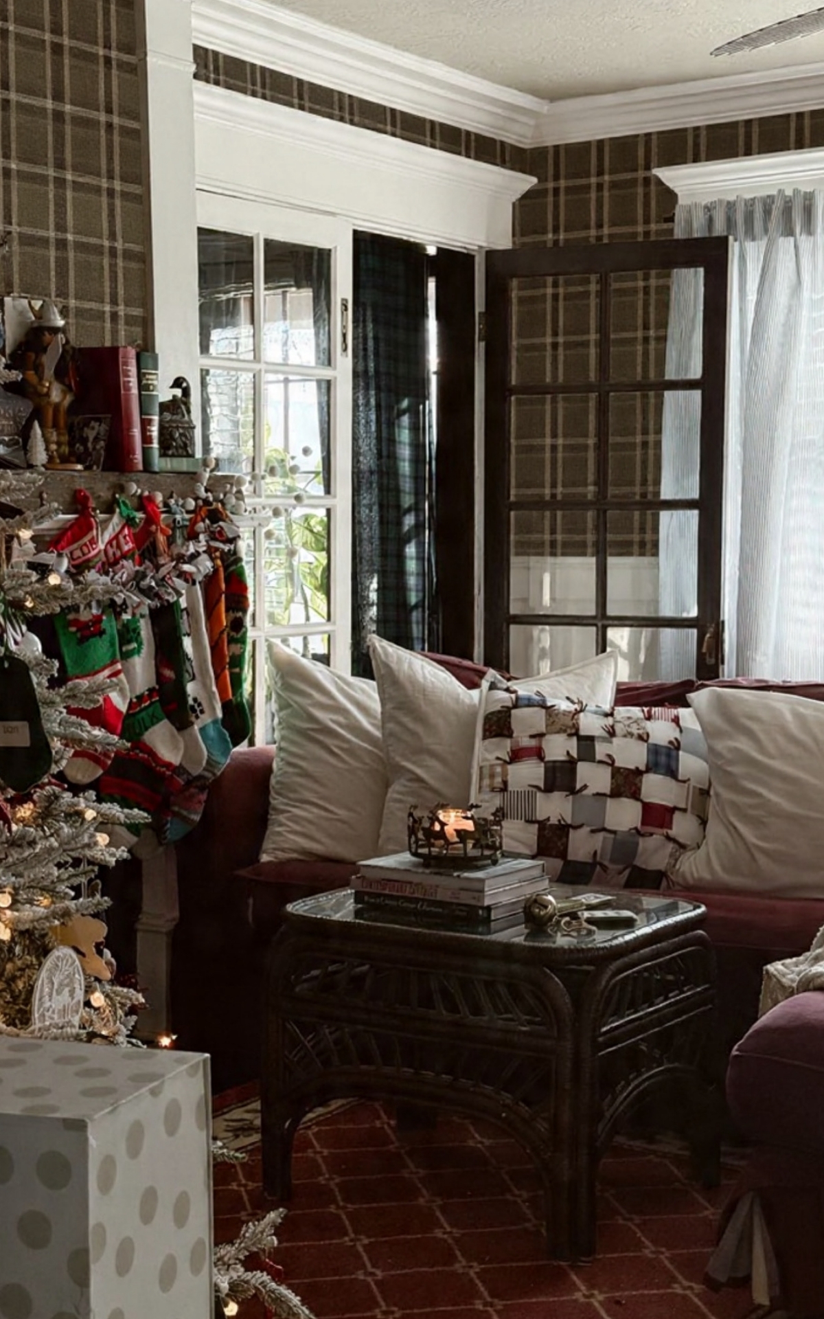 All of these Images are mine taken of our home, but I did use an AI tool to add the plaid wallpaper. All of these images (without the wallpaper) were recently shared in my Christmas Home 2025 Tour, where I gave a closer look at our home dressed for the holidays. If you missed it, you can see the full tour here.