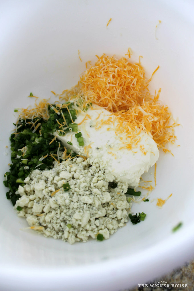 To make this delicious Pomegranate Blue Cheese Ball, just add these ingredients to a large bowl: