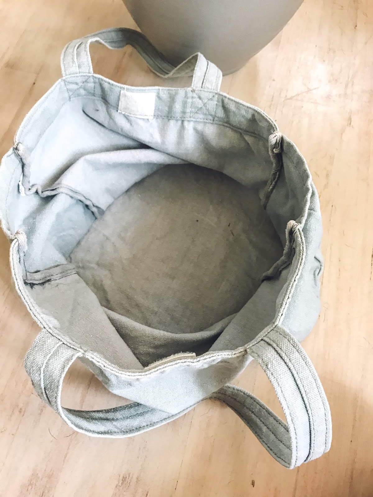 It was a pretty tight fit to get the tote over the lip of the pot but I got it to fit. Then I tucked in the corners so that they wouldn’t poke out on the bottom.