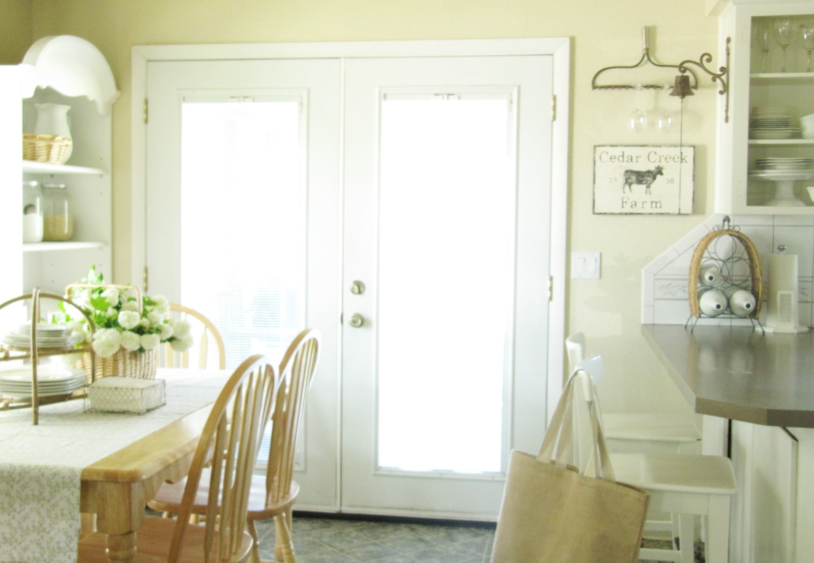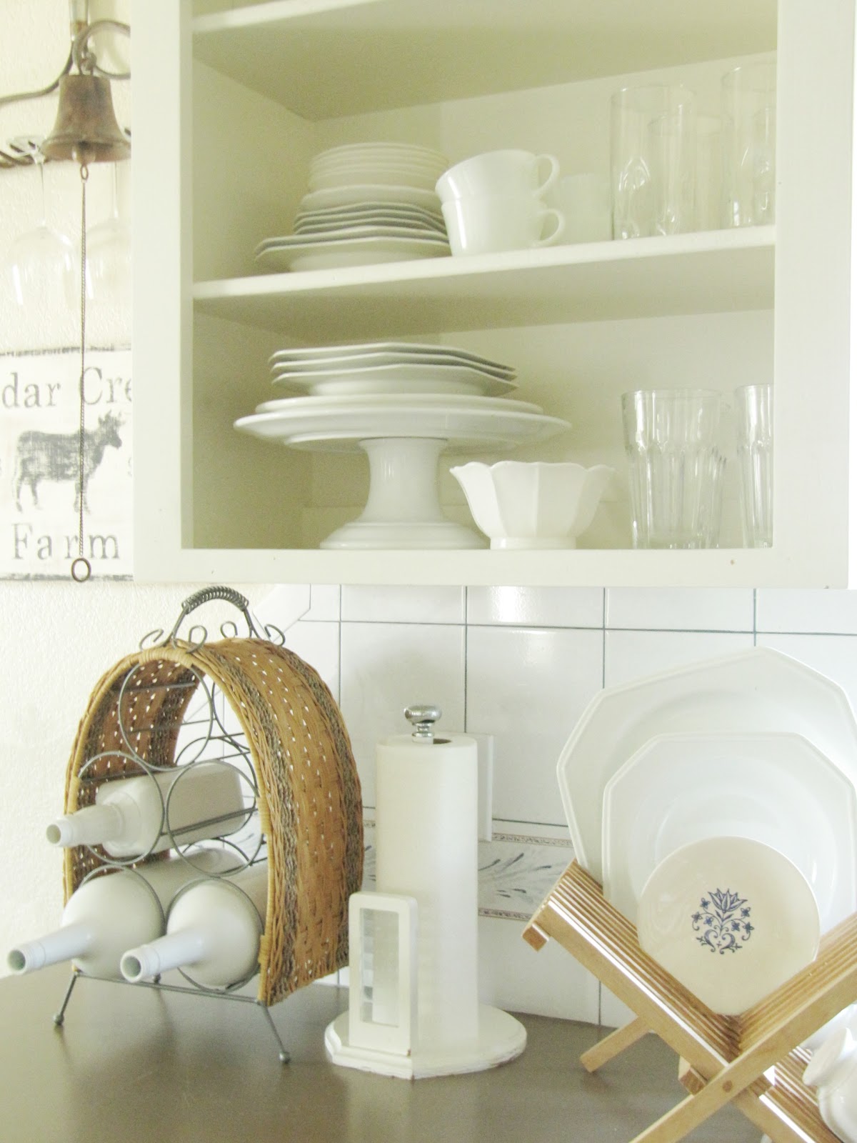 Last year when my Snowball bush was in bloom I cut some branches off and brought them into my kitchen. (as seen HERE). This year when my snow ball bush was in bloom I cut some branches off and brought them into my kitchen. . . I know I’m so original! I just love the way they liven up my kitchen.