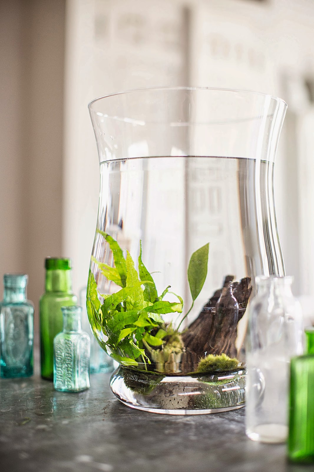 I especially loved this one where she has created her own little pond, using bogwood and an aquatic plant.