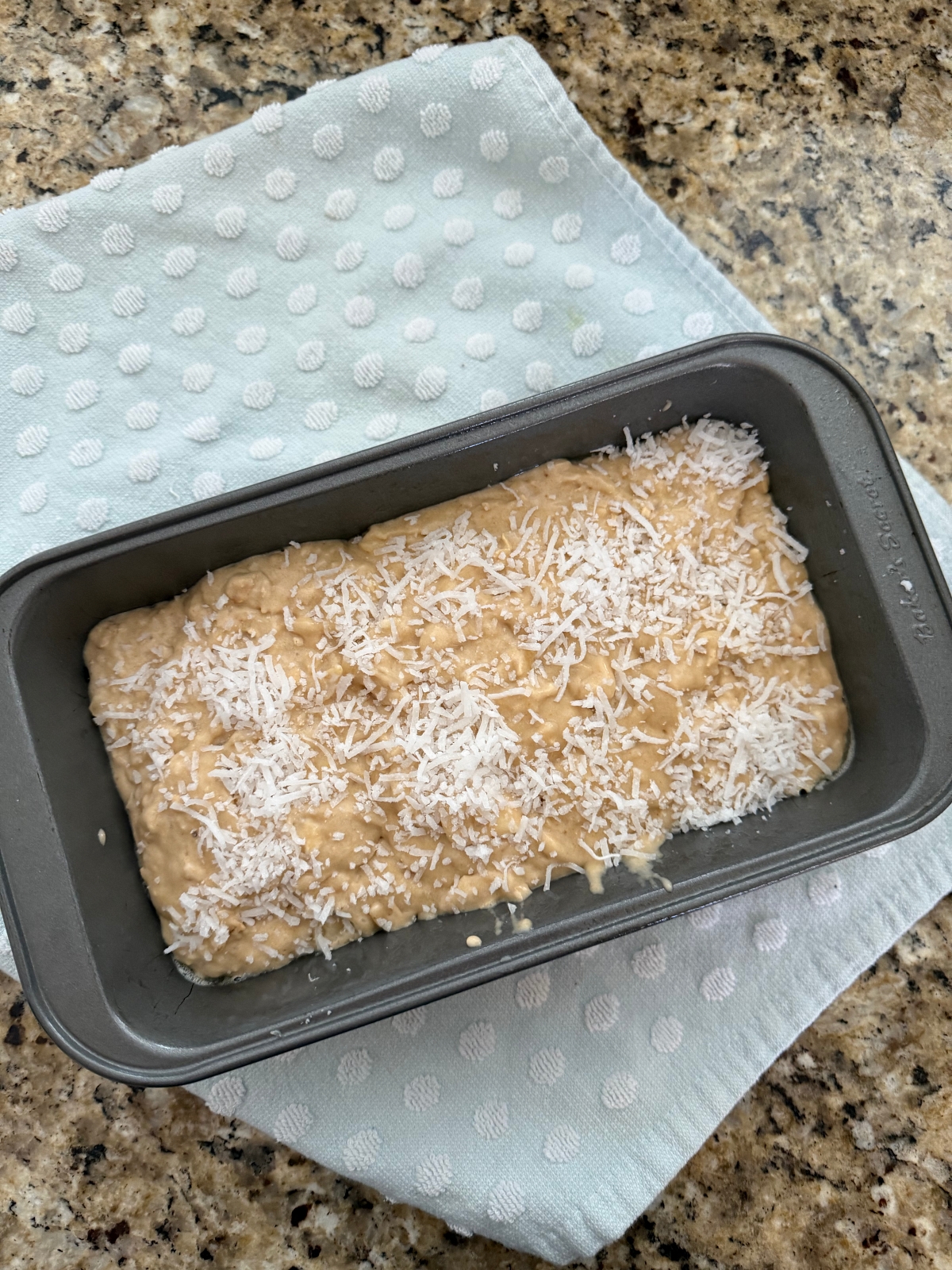 6. Sprinkle extra shredded coconut on top of the batter.
