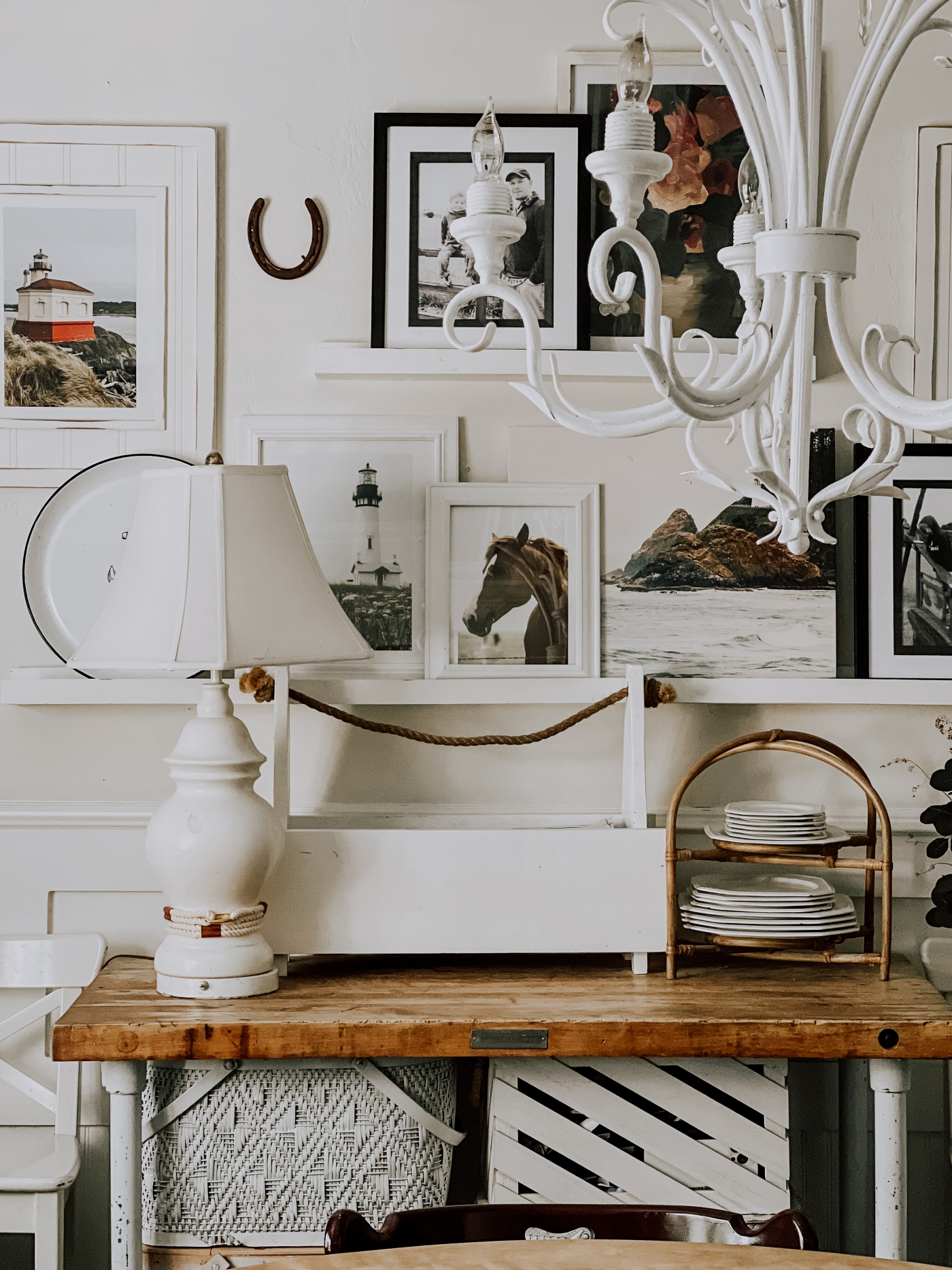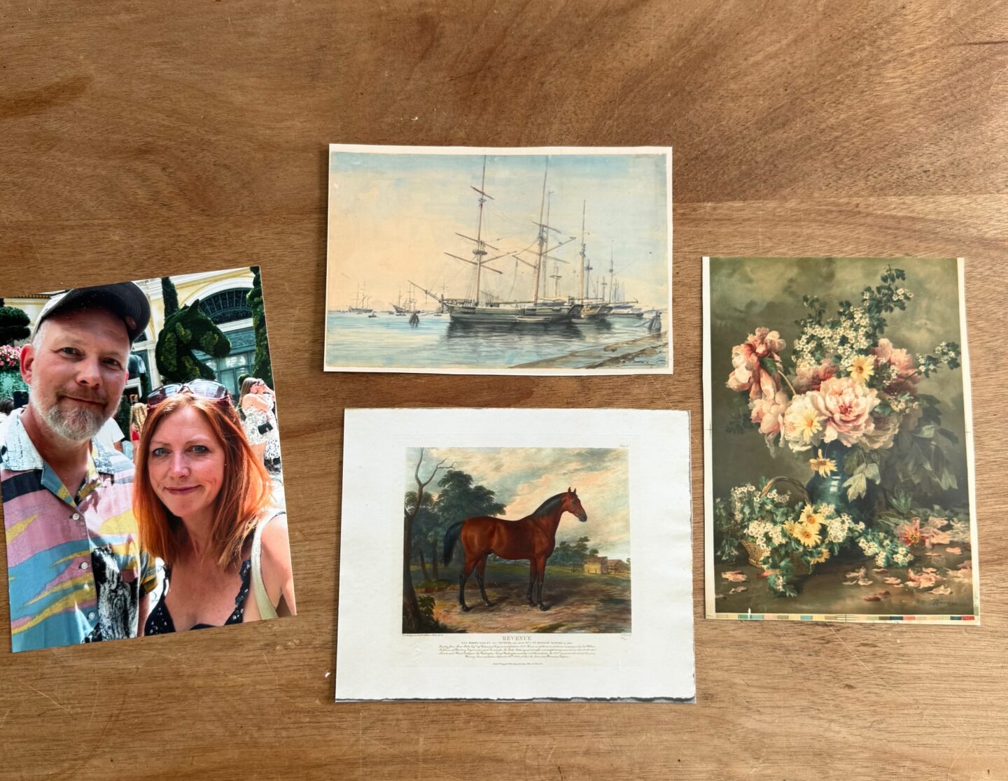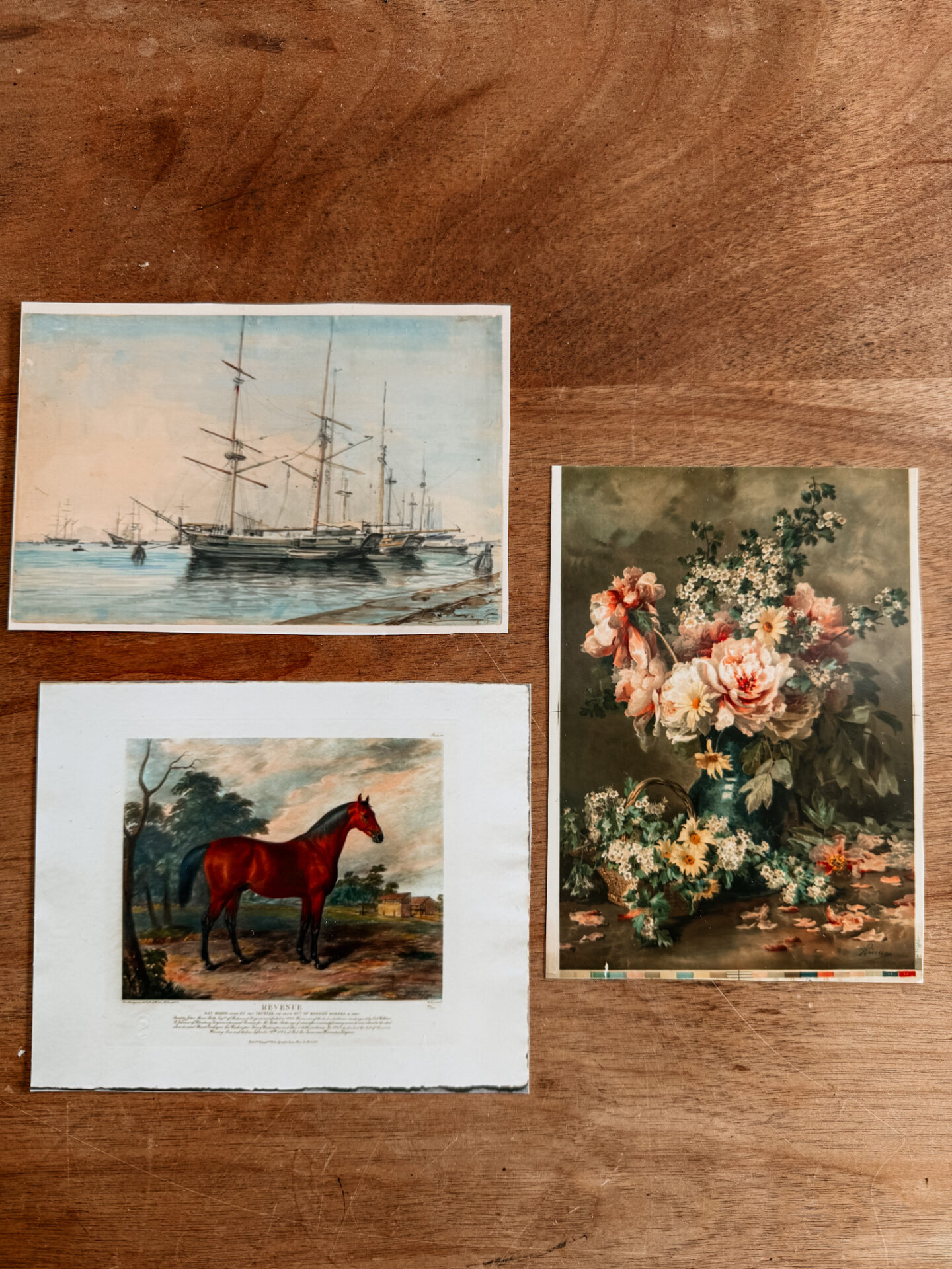 I absolutely love this little collection of prints I put together. The photo of my husband and me will find a different spot in our home, but the horse portrait, floral painting, and ship artwork felt meant to stay together. Not only are the colors beautifully similar, but the mix of styles reflects my aesthetic so well — coastal, cottage, and a touch of country. This is the kind of art that truly speaks to me, and I love that it feels so personal and representative of my style.