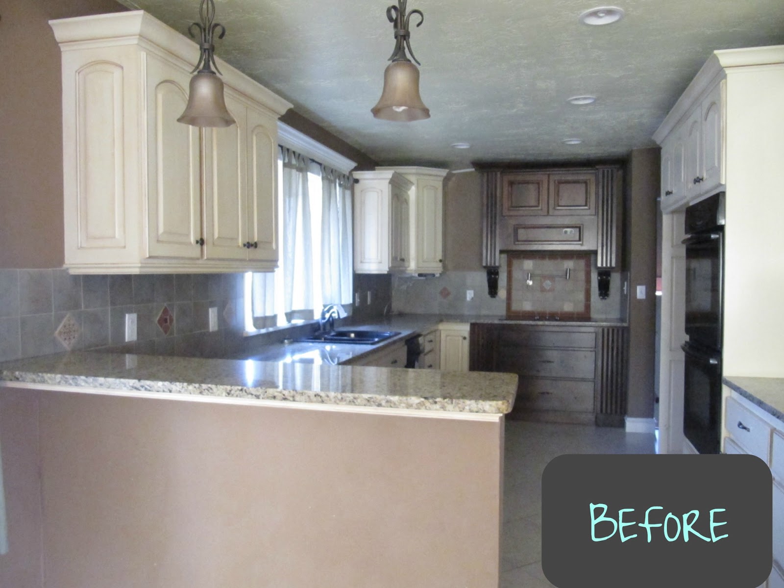I first painted the cabinets a creamy white. As you can see from the before picture, they use to be a glazed dark cream color. You can read more about my Painted Cabinets in this post HERE.