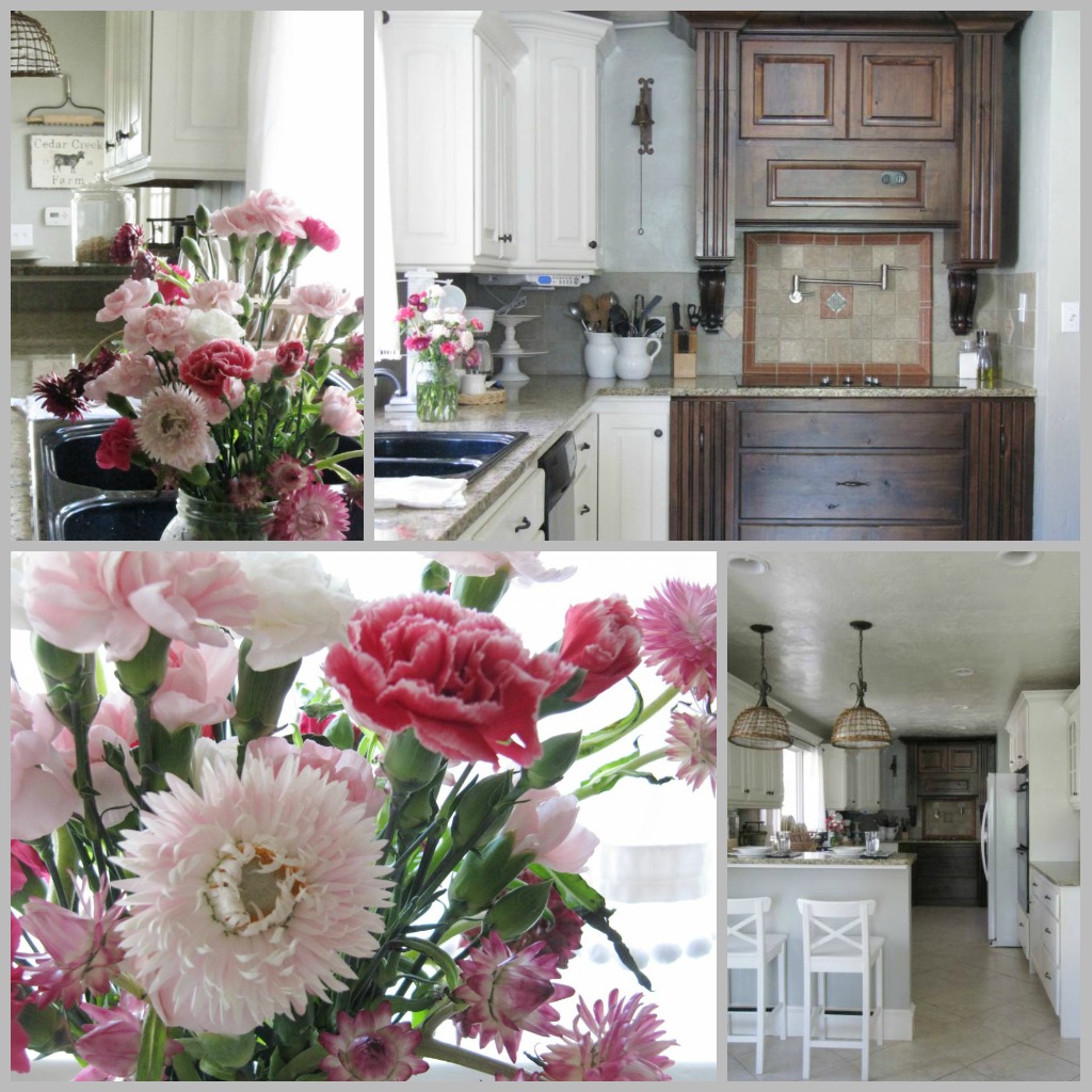 I first painted the cabinets a creamy white. As you can see from the before picture, they use to be a glazed dark cream color. You can read more about my Painted Cabinets in this post HERE.