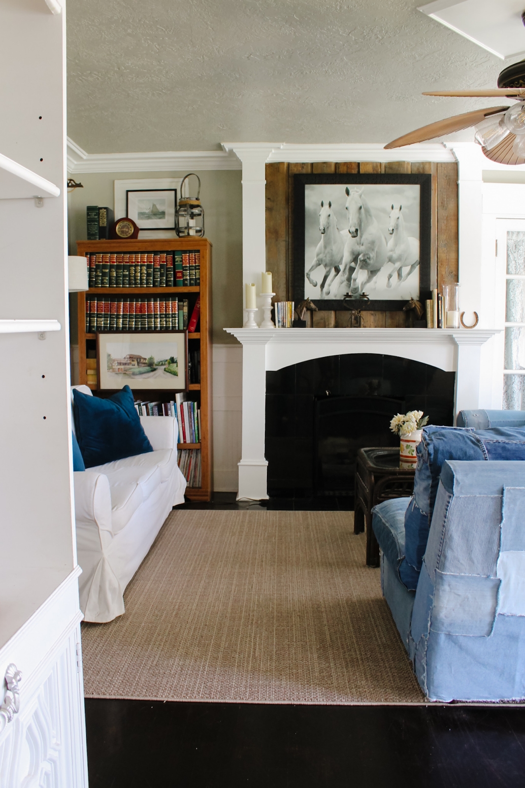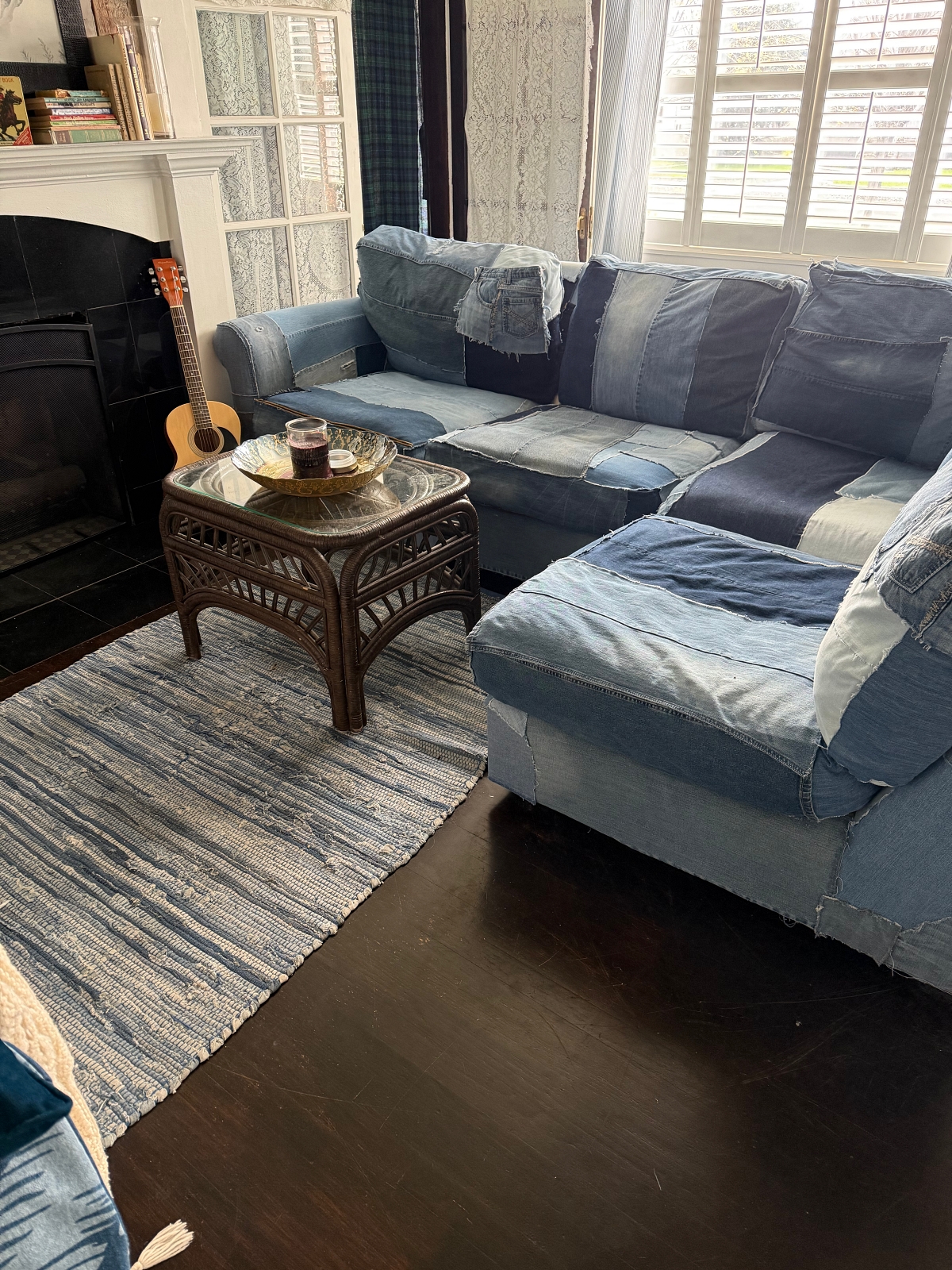 Before adding the new rug, I had this denim rug in the living room. I actually love this rug, especially paired with my denim couch, but the size just wasn’t right for the space. I believe it’s about a 4×6, so it mostly just sat in the middle of the room and didn’t fit under the couch at all. Because it was too small, the furniture didn’t feel anchored the way it should. I’ll definitely find another spot for this rug somewhere else in the house, but for our living room it simply wasn’t the right fit.