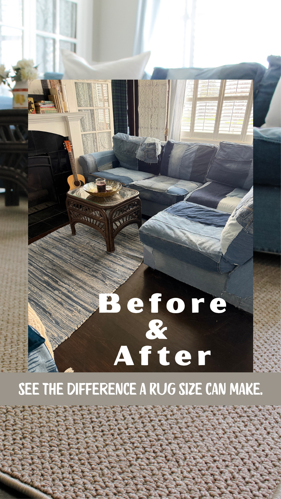 - A larger size. The rug needed to be big enough to fit under our couch so it could properly anchor the seating area.
