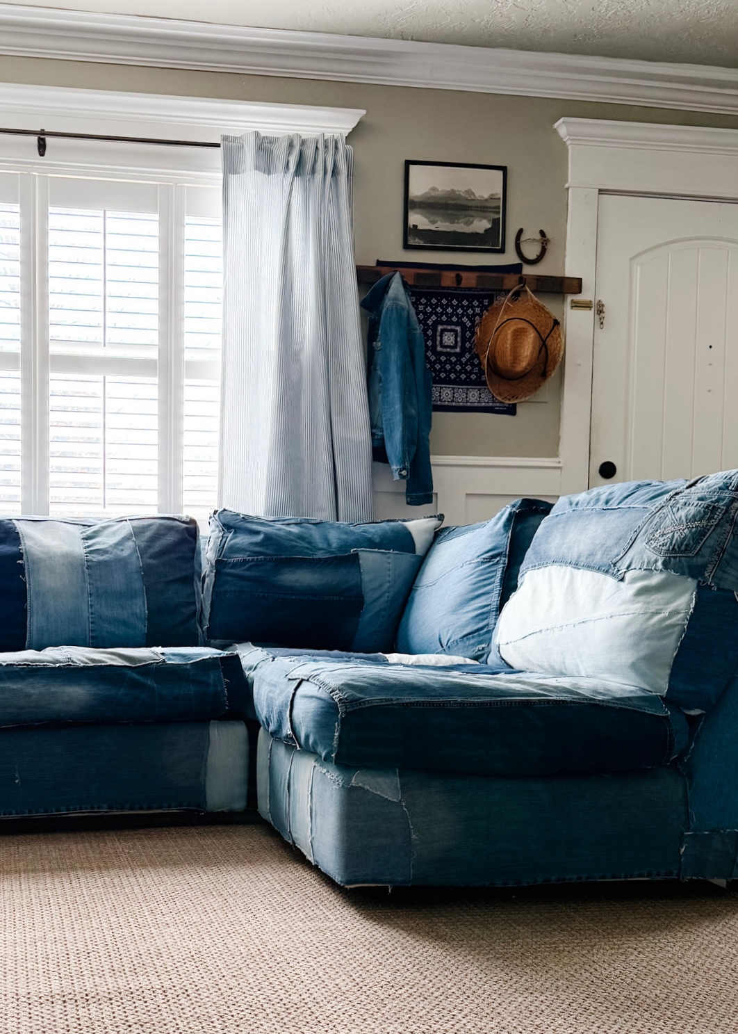 After I finish up today’s blog post, I’m going to share another blog post about my denim couch. You can Catch Part 1 of my DIY Denim Couch HERE, but since that post, I have completed the Denim Couch and will be sharing more about it in a part 2 soon.