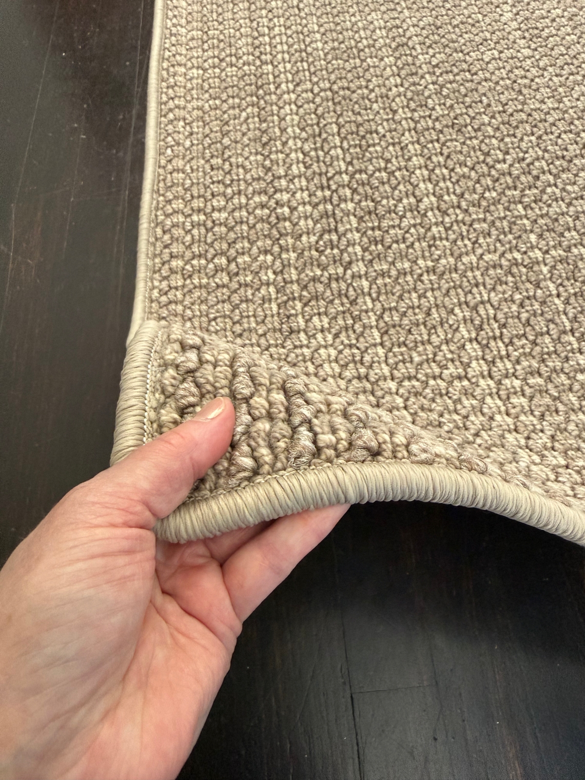 From a distance, this rug almost has the look of a sisal, jute, or seagrass weave, which is a style I’m always drawn to because it adds so much natural texture to a room. However, I’ve owned jute rugs before, and while they look beautiful, they aren’t always the most comfortable to walk on. They can feel rough underfoot and sometimes shed little fibers or dust.