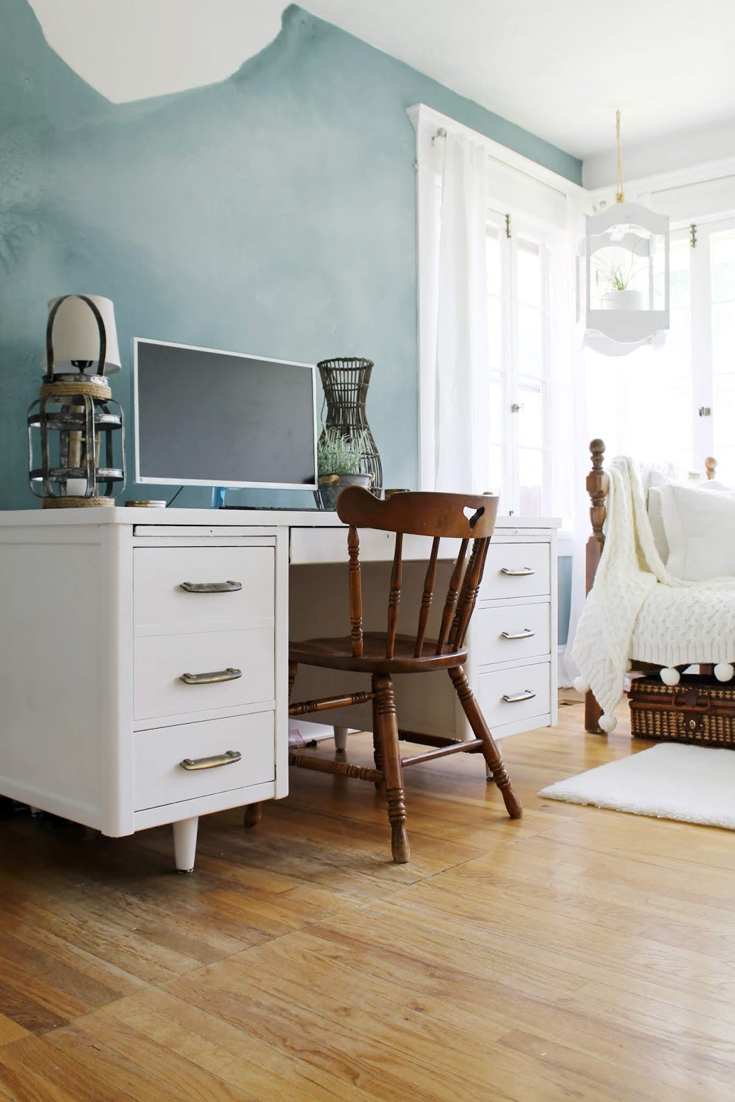 If I had to pick a favorite room in our house though, I’d have to say it is the sunroom/office. The old french doors leading in, the wall of old windows and the sunlight that shines in all make this room so relaxing to be in. I’m sure you can see why it’s my favorite.