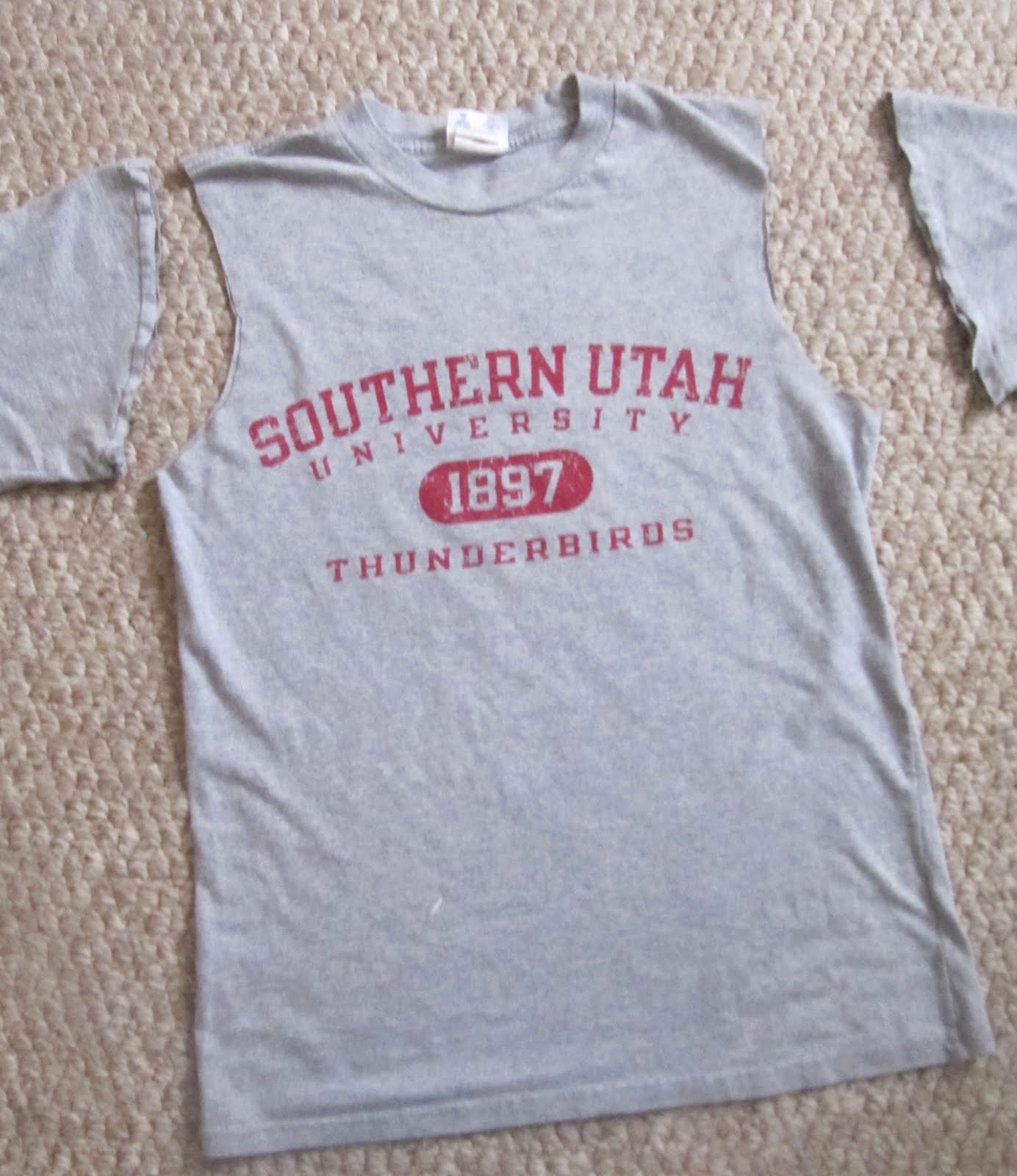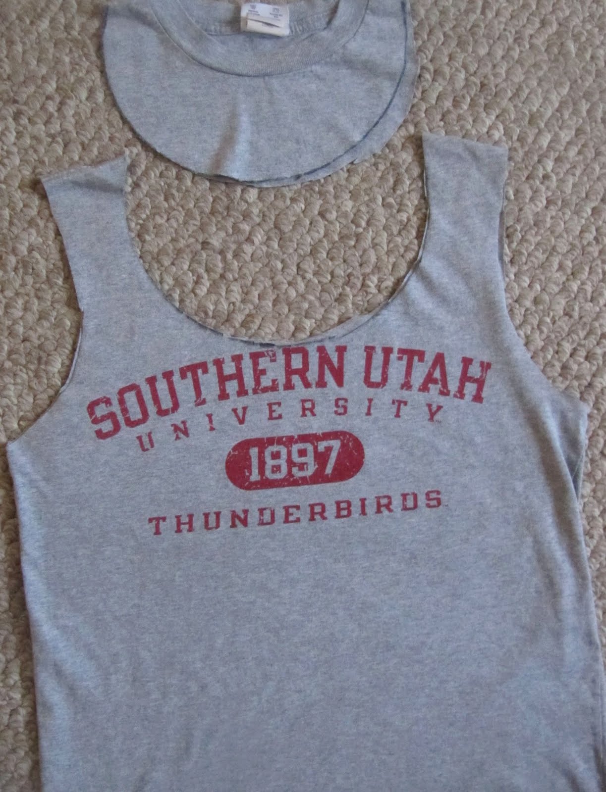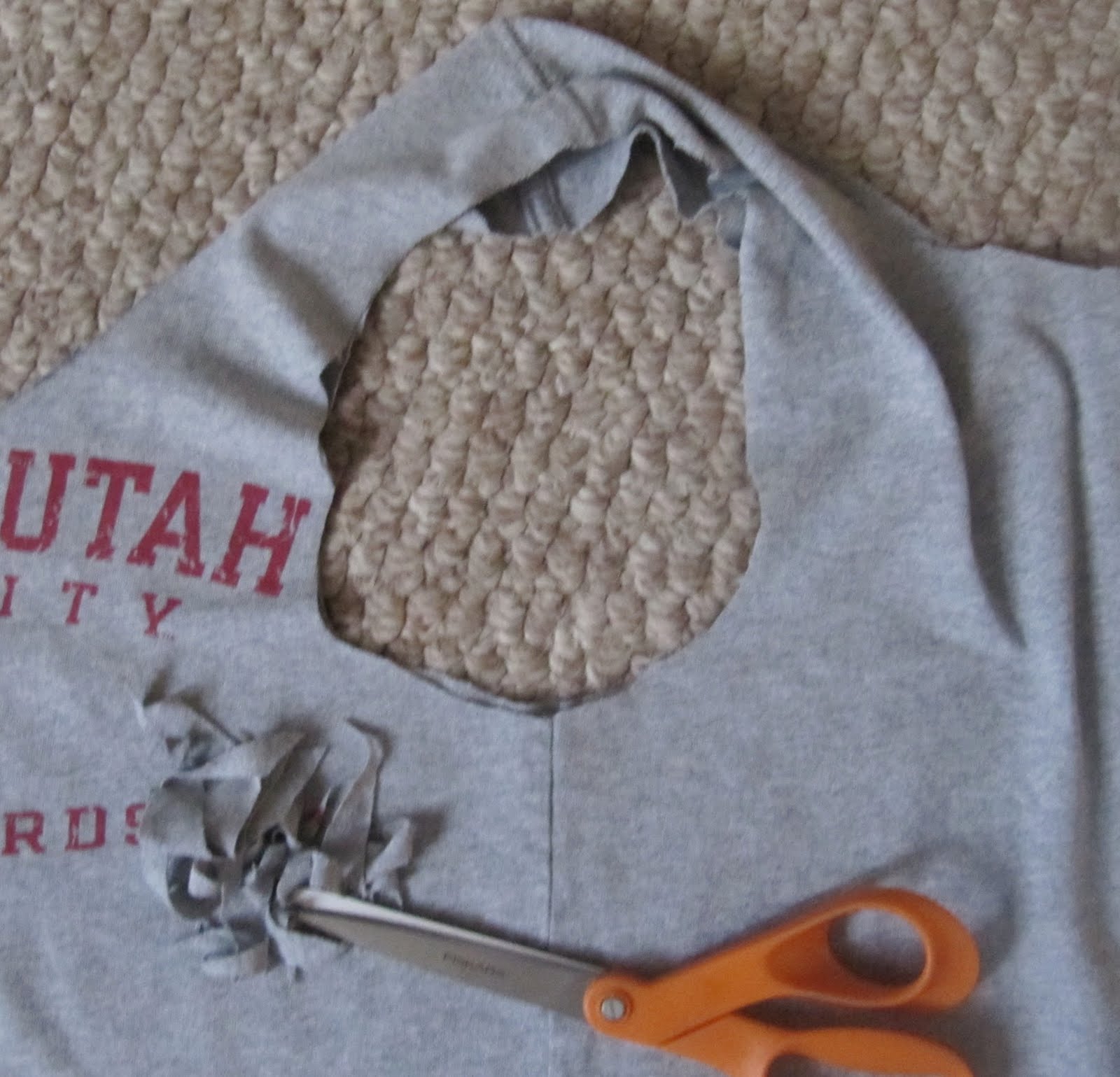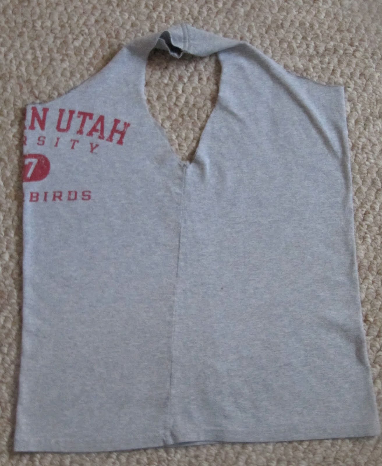 I then trimmed the neck of the tee to look more rounded. You just need it big enough to fit your arm through.