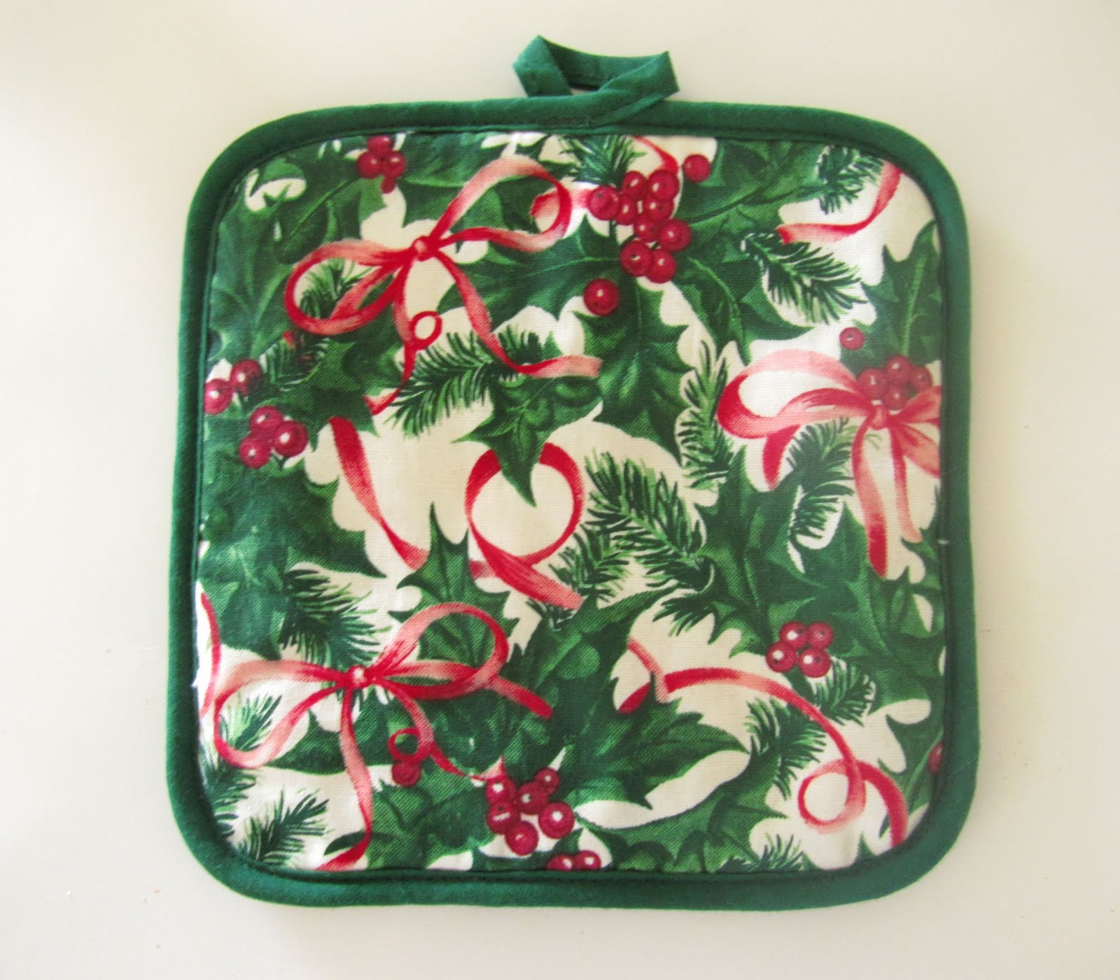 {Most hot pads have a handy little hooks on them. Just remember to make that your top}